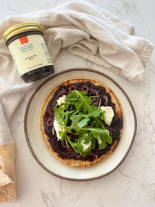 Spiced Fig Jam Pizza with Goat Cheese, Radicchio, and Caramelized Onions